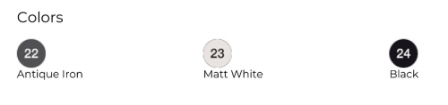Возможные цвета: античное железо (22), матовый белый (23), черный (24).