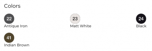 Возможные цвета: античное железо (22), матовый белый (23), черный (24), индийский коричневый (41).
