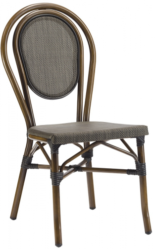 Каркас удобного и стильного уличного стула выполнен из алюминия толщиной 1.5 мм и текстилена. Отделка выполнена под дерево, за счет чего достигается такой неповторимый, "теплый" дизайн. Этот стул - отличное решение для загородного дома или дачи, а также летних площадок кафе и ресторанов.