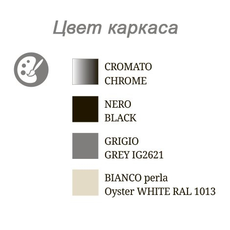 Возможные цвета каркаса: хром, черный, серый IG2621, жемчужный белый RAL 1013.