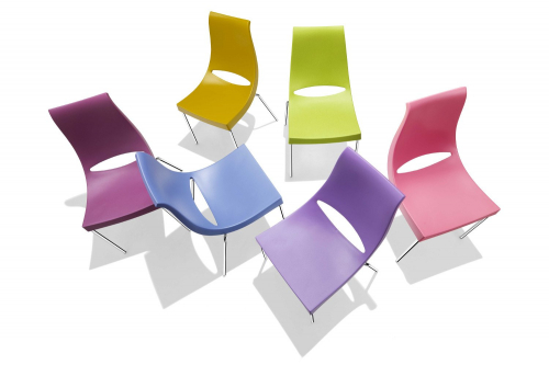 Chiacchiera - пластиковый стул с вырезом, привлекающий внимание своим современным дизайном. Выразительная форма и четкие очертания линии - главные достоинства стула. Классический, экономичный дизайн привлекает овальным пространством между спинкой и сиденьем. Все это прекрасно дополняют классические стальные ножки, которые придают креслу элегантности. Его минималистичная форма делает его универсальным дополнением любого интерьера или открытого пространства.