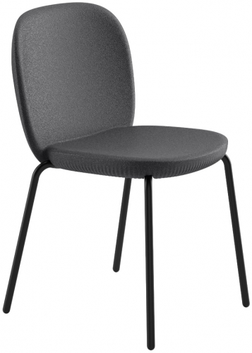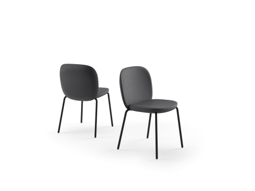 Стул имеет плавные линии и уникальную ребристую поверхность со специальной отделкой, напоминающей натуральные материалы. Ножки выполнены из окрашенного металла.