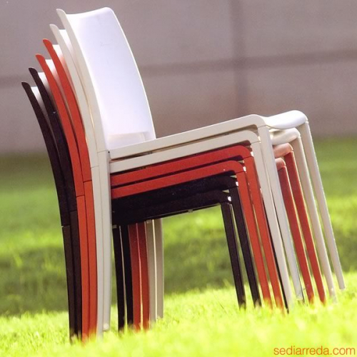 Mya - это коллекция, состоящая из барных и обеденных стульев с изысканным и филигранным дизайном. Стул с литым алюминиевым каркасом, сиденье и спинка из стеклопластика. Подходят для использования под открытым небом, благодаря пластику, который не выгорает и не нагревается на солнце. Эти легкие стулья можно вставлять один в другой, что экономит место при хранении и транспортировке.
