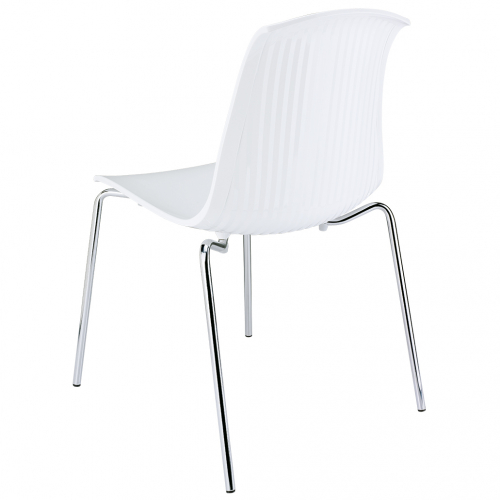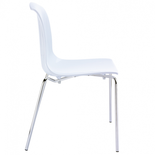 Пластиковый стул Allegra с корпусом из перерабатываемого поликарбоната и ножками из хромированной стали.