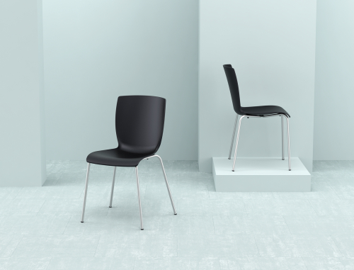Пластиковый стул Mio с корпусом из перерабатываемого полипропилена и ножками из окрашенной стали.