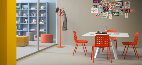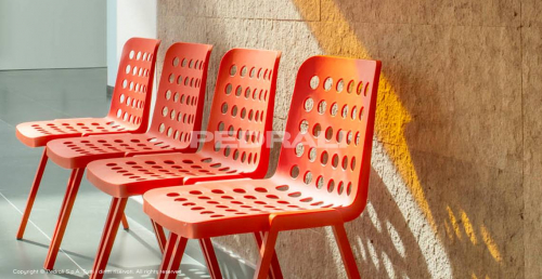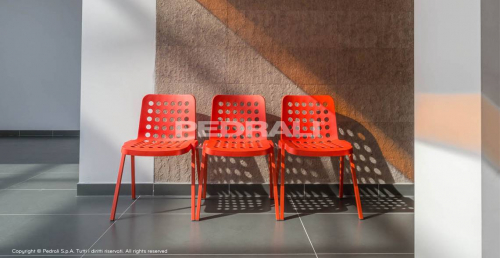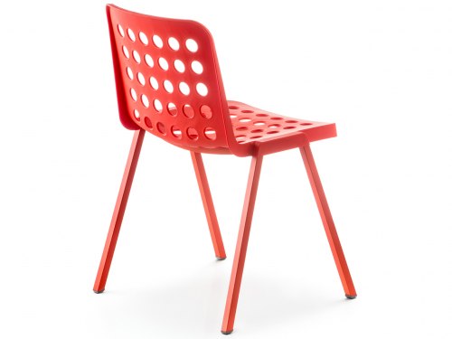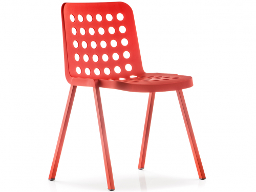 Повторение геометрических элементов формирует графический узор, который определяет внешний вид и функциональный характер стула Koi-Booki. Единый корпус стула из стеклопластика сочетается с каркасом и ножками из алюминия. Koi-Booki штабелируемый и может быть оснащен креплением, позволяющим устанавливать стулья в ряд. Данная модель не нагревается и не выгорает на солнце, а значит будет идеальным решением для открытых пространств.