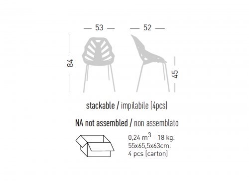 Корпус стула состоит из литого штампованного технополимерного сиденья воедино со спинкой, и металлическими ножками, либо на поворотном основании с 4 или 5 ножками. Благодаря необычному дизайну, возможности штабелирования и различным цветам стулья Ninja идеально вписываются в современные условия.