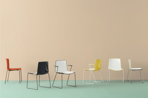 Стул на металлических полозьях Tweet гармонично сочетает в себе рациональный и чистый дизайн с широким выбором отделки корпуса. Благодаря этой модели можно эксклюзивно украсить домашний интерьер или помещения сферы Contract. Штабелируемый стул с двойным корпусом из стеклопластика, отлитого под давлением, и каркасом из стальных труб в виде полозьев станет превосходным решением для офиса и дома, кафе, ресторана, разноплановых мероприятий и конференций.