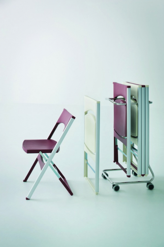 Компактные складные стулья Compact Gaber. Доступен широкий диапазон цветов, каркас выполнен из анодированного алюминия, детали - из технополимера; сиденье в сложенном состоянии имеет толщину всего 35 см.