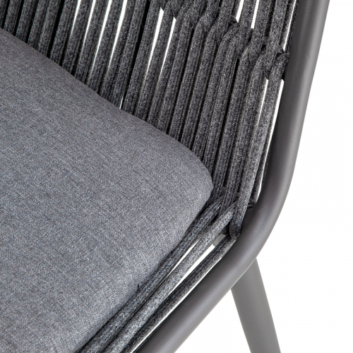 Стул Como сочетает в себе прочность алюминиевого каркаса и изящность плетения из полиэстера (роуп). Мягкая подушка на сиденье с чехлом из из прочного, стойкого к загрязнениям, водооталкивающего олефина обеспечивает максимальный комфорт. Модель прекрасно подойдет для обустройства обеденных зон в интерьере и на открытых пространствах, создавая изысканную атмосферу благодаря своей минималистичной эстетичности.