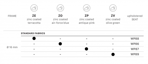 Обращаем ваше внимание, что каждый цвет каркаса сочетается только с определенными цветами обивки. При выборе цветовой комбинации ориентируйтесь на таблицу с палитрой, где указаны доступные варианты сочетаний.