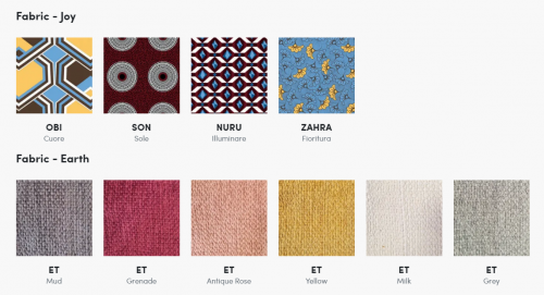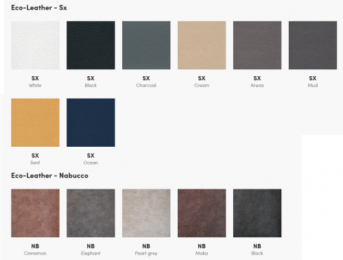 В этой коллекции доступен широкий спектр цветов для структуры, которые, в свою очередь, могут быть изготовлены из различных сертифицированных материалов, включая ткань, экокожу и кожу, все из которых предлагаются в богатой палитре оттенков. Отдел D&R в Natisa исследовал и выбрал все отделки по их стойкости и высококачественным характеристикам: стойкие к пятнам, огнестойкие и водоотталкивающие материалы, чтобы удовлетворить все функциональные и другие требования людей, которые любят Made in Italy.