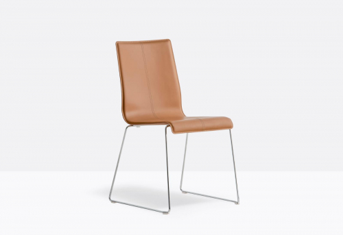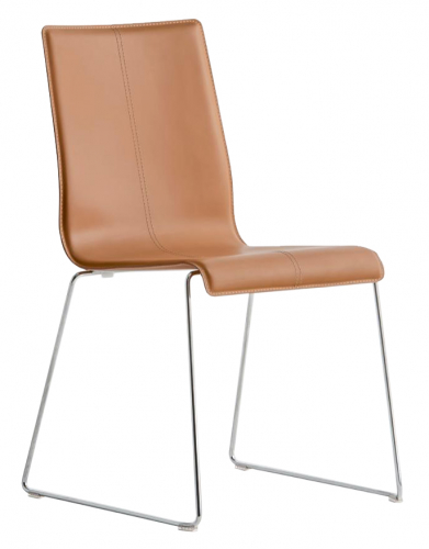 Стул Kuadra с каркасом в виде полозьев и инновационной изогнутой спинкой делают коллекцию удобной и универсальной. В обивке используется крупная белая строчка, которая придает стулу изюминку. Данный тип кожи позволяет максимально долго использовать мебель. Особенно эффектно стулья будут смотреться в интерьере лофт. Данная модель штабелируется, что делает ее наиболее удобной в транспортировке и хранении.