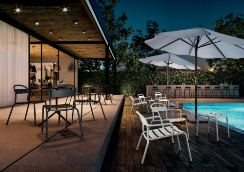 Коллекция Stecca представляет собой расширенную линейку, отвечающую всем требованиям, как для общественных пространств, так и для жилых помещений, одинаково удобную как для внутреннего, так и для наружного применения. Ее дизайн основан на плавной форме ее классических изогнутых деревянных аналогов, которая оживает благодаря вставке алюминия.