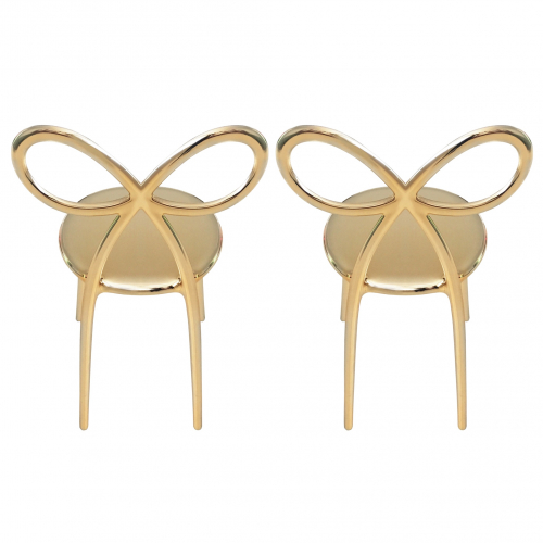 Стул Ribbon, способный создать необычайно романтичную атмосферу, является олицетворением женского стула. Красивый стул с сильной индивидуальностью характеризуется бантом, спроектированным как спинка. Бант - живой символ подарка и праздника, представлен дизайнером с мягкими, легкими и существенными линиями. Металлическая отделка усиливает гламурный эффект.