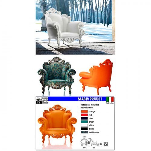 Но теперь есть поистине революционные новости, поскольку сбывается парадокс: Proust теперь превратилось в изделие, полученное методом ротационной формовки. Дамы и господа, представляем вам Magis Proust. Эта жемчужина технологий и производства привносит новую энергию в свои цвета и атмосферу, что делает ее поистине вечным объектом» - говорит о своем творении дизайнер Алессандро Мендини.