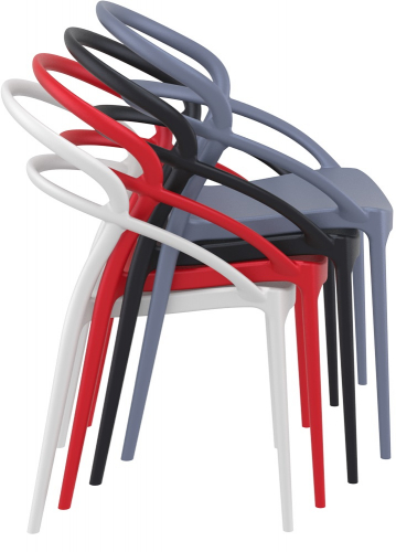 Пластиковые кресла серии Pia с интересным переплетением спинки, плавно переходящей в подлокотники, станут отличным выбором для обстановки фуд-кортов, кафе, ресторанов и баров. Благодаря использованию высококачественных материалов они долгое время не теряют своего привлекательного внешнего вида, даже несмотря на активную эксплуатацию. Отсутствие металлического каркаса и устойчивость к ультрафиолетовому воздействию обеспечивают использование кресел из пластика Pia в интерьерах и на открытых площадках.