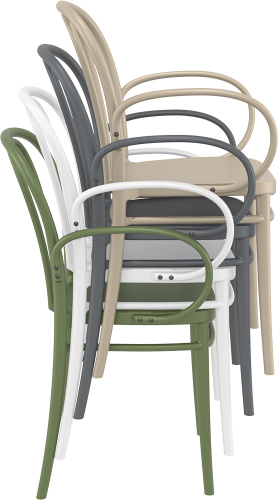 Пластиковые кресла серии Victor XL станут отличным выбором для обстановки фуд-кортов, кафе и ресторанов. Благодаря использованию высококачественных материалов, они долгое время не теряют своего привлекательного внешнего вида, даже несмотря на активную эксплуатацию. Отсутствие металлического каркаса и устойчивость к ультрафиолетовому воздействию обеспечивают использование пластиковых кресел Victor XL в том числе и на открытых площадках.