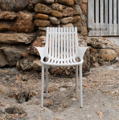 Дизайнер утверждает, что любая идея исходит от света и моря, как жизнь... От эфемерной красоты сезона до вечности, чтобы сохранить этот момент мечты в постоянной структуре. Наблюдение за пластиковыми предметами, принесенные морем, такими как искусственные раковины, вдохновило дизайнера на уникальную коллекцию из переработанного пластика с острова. Ibiza - это эмоциональное состояние души. Вместе с Vondom эта мечта осуществилась: родилась эко-коллекция Ibiza.