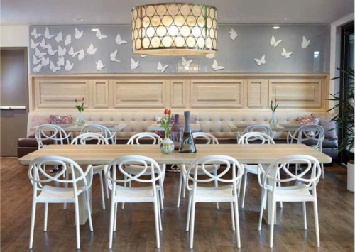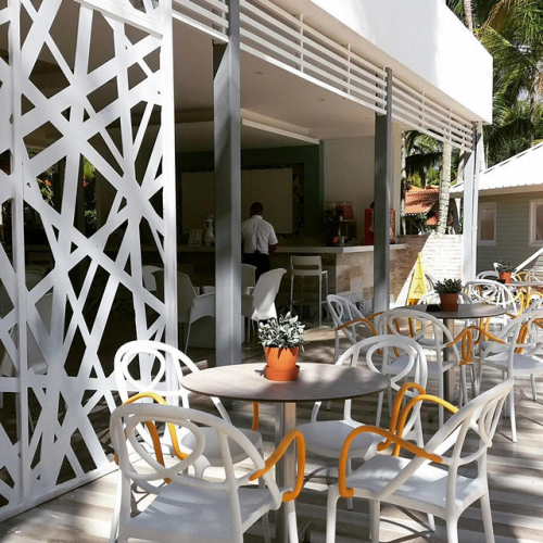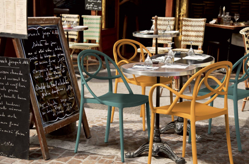 Etoile-P - это легкое, практичное, удобное кресло эксклюзивного и элегантного дизайна, которое подойдет как для частных интерьеров, так и для заведений сферы Contract, для использования в помещении и на открытых площадках. Etoile-P - отличный выбор для обстановки фуд-кортов, кафе, ресторанов. Оригинальная витая спинка придает изделию стильный вид.