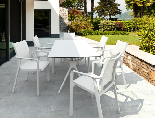 Это универсальное кресло сочетается с шезлонгом Pacific, а также с широким спектром уличных столов фабрики Siesta.