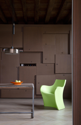 Коллекция Woopy, разработанная эклектичным Karim Rashid, интерпретирует извилистые и неопределенно органические линии, которые лучше всего представляют его. Удобное обволакивающее сиденье соединяется со спинкой, от которой гармонично отходят извилистые линии подлокотников. Кресла Woopy идеально подходят для обстановки частных интерьеров и для заведений сферы Contract.