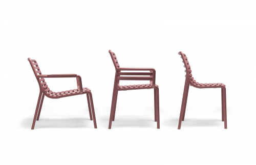 Кресло Doga станет отличным решением для обстановки обеденных зон или зон отдыха на свежем воздухе сферы Contract, но также оно отлично впишется в частные интерьеры. Эстетичная и функциональная модель максимально практична в использовании: с легкостью штабелируется, дезинфицируется и полностью перерабатывается.