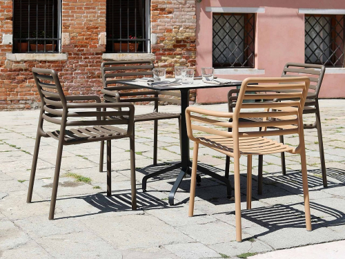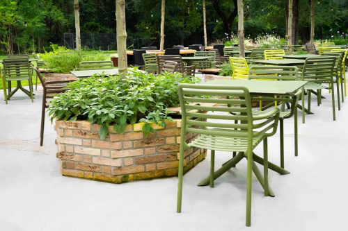 Кресло Doga станет отличным решением для обстановки обеденных зон или зон отдыха на свежем воздухе сферы Contract, но также оно отлично впишется в частные интерьеры. Эстетичная и функциональная модель максимально практична в использовании: с легкостью штабелируется, дезинфицируется и полностью перерабатывается.
