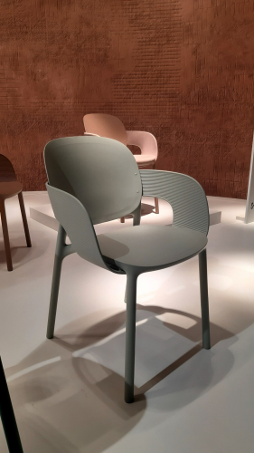 Hug технически представляет собой монокок из технополимера, но на самом деле это гибкая система, в которой компоненты объединяются для создания различных конфигураций стула и кресла. Предназначенный для использования на открытом воздухе, он также хорошо вписывается во внутренние помещения благодаря возможности покрытия некоторых его частей тканью. Внимание к декоративному аспекту, не в ущерб функциональности, подтверждается предложением вариантов текстиля: выбор мягких оттенков, от нейтральных до светло-голубых и бисквитных, сделанный интересным благодаря эффекту меланжа и видимым нитям утка, которые можно выбрать среди различных предложений в каталоге.