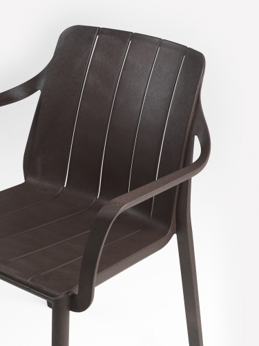 Планки, плавные закругленные линии и экологичность - вот отличительные черты нового элегантного кресла Tiberina. Модель может быть выполнена из регенерированного пластика (цвет терра) или из пластика, пригодного для вторичной переработки.