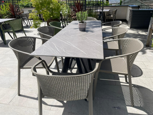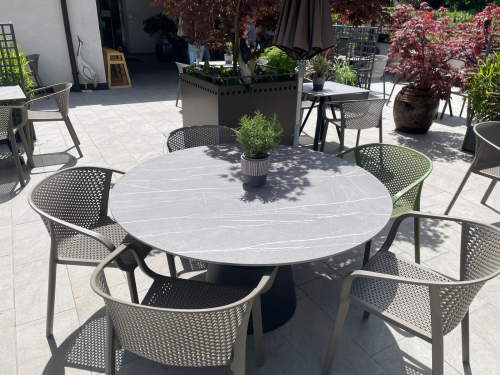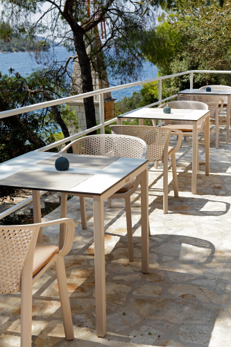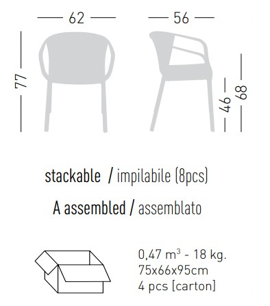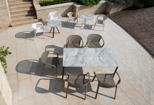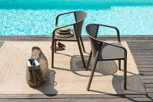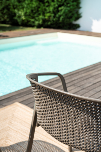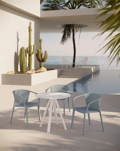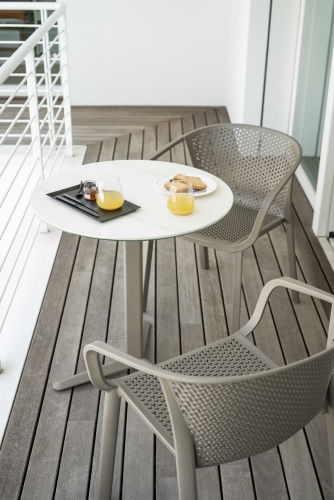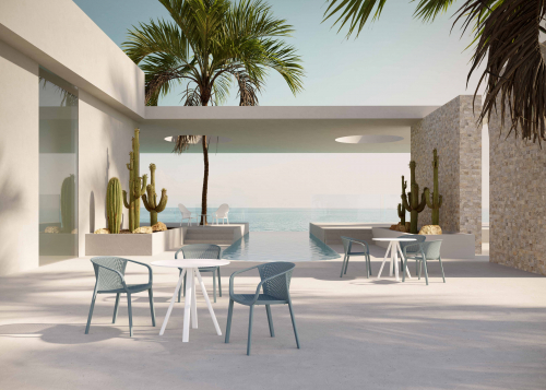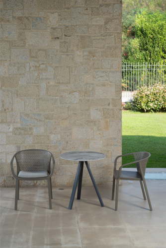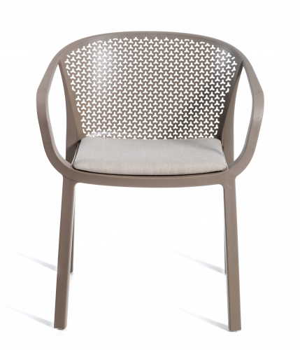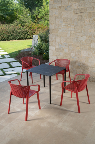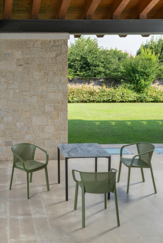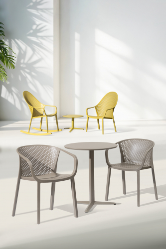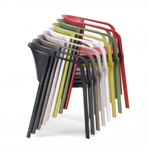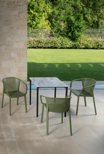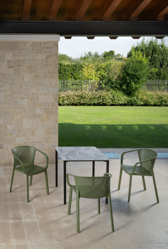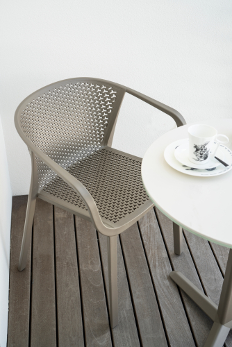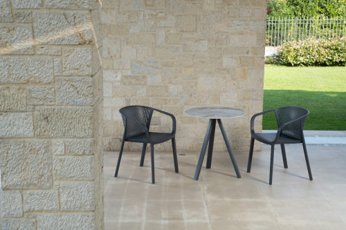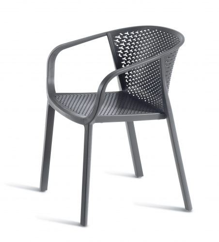 Коллекция Gianet создана для тех, кто ценит простую элегантность и удобство в использовании. Плавные линии спинки и сиденья обеспечивают комфортную посадку, а перфорированная декоративная отделка придаёт изделию лёгкость и современный характер. Благодаря прочной конструкции кресло выдерживает ежедневную эксплуатацию как в помещении, так и на открытом воздухе - на веранде, в саду или в летней зоне кафе.