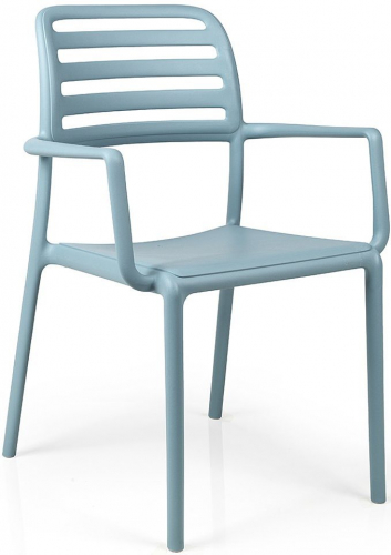 Кресло Costa с подлокотниками характеризуется решетчатой спинкой. Оно изготовлено из высококачественного и надежного стеклопластика. Дизайн модели отличается бесшовным трубчатым каркасом с закругленным профилем и углами, а также простыми, но плавными линиями. Легкое, практичное и удобное, оно превосходно подойдет для создания привлекательного пространства, которое будет дарить позитивные эмоции в моменты времяпрепровождения на свежем воздухе.