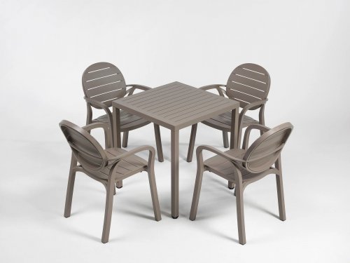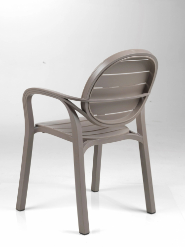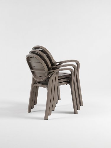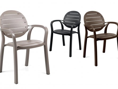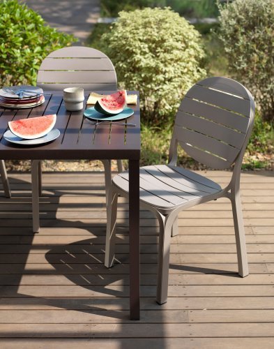Изысканное кресло Palma обладает современным дизайном. Его ярким акцентом является сиденье и спинка, которые изготовлены из широких реек из полипропилена с древесной текстурой. Ощущение инновационного характера усиливают тонкие лаконичные ножки, которые вытянуты параллельно корпусу. Palma – это стильное решение для обстановки как летнего кафе, так и для частного сада. Очень низкий коэффициент теплопроводности материала позволяет продукции долго оставаться на солнце без поглощения тепла.