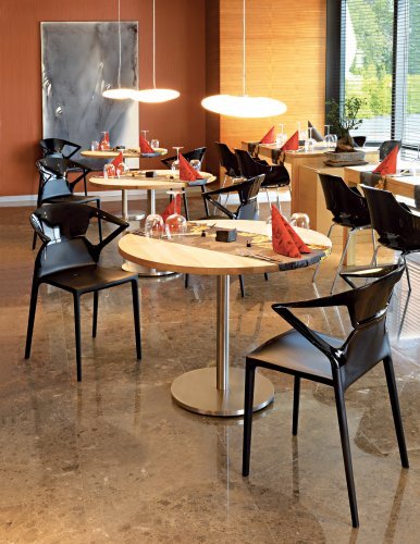 Кресло Ego-K обладает интересным и привлекательным дизайном. Оригинальный силуэт спинки, подлокотников и сиденья делает изделие по истине уникальным, а сочетание стеклопластика и поликарбоната придает ему эстетическую элегантность и функциональность. В состав полимеров входит защита от УФ-лучей, что позволяет использовать их как в помещении, так и на открытом воздухе. Модель станет отличным решением для обустройства площадок сферы Contract.