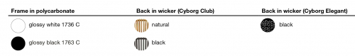 В 1960 году учёный, изобретатель и музыкант Манфред Клайнс придумал термин «киборг», который затем становился всё более популярным благодаря бесчисленным научно-фантастическим романам и фильмам; он обозначает организм, сочетающий в себе природные и искусственные элементы. Студия Марселя Вандерса интерпретирует это слияние как выражение постоянного поиска новых комбинаций в современном мире, где, кажется, уже не осталось ничего по-настоящему нового, что можно было бы изобрести. Это послужило основой для создания коллекции кресел Cyborg с высокопрочным и универсальным поликарбонатным корпусом. Сиденье можно дополнить спинками из различных натуральных или синтетических материалов: от поликарбоната до плетения, от массива дерева до вариантов с тканевой или кожаной обивкой. Эта дальнейшая эволюция кресла в равной степени поэтична и технологична, уютна и удивительна и соответствует широчайшему спектру различных настроек.