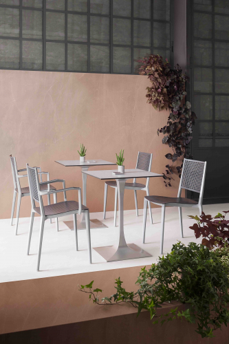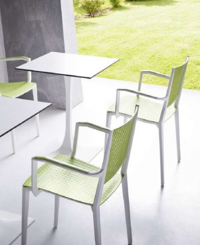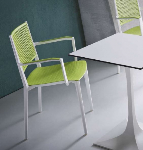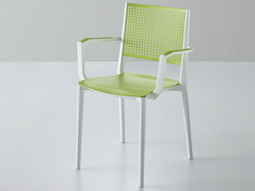 Мягкая и гибкая спинка, а также большое сиденье, отличающееся инновационной текстурой, обеспечивают комфорт во время сидения. Стулья доступны в одноцветных и двухцветных сочетаниях и подходят как для внутренних, так и для наружных пространств.