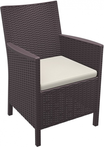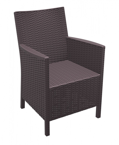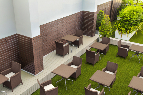 Пластиковое плетеное кресло California изготовлено из прочного погодостойкого пластика, армированного стекловолокном. Благодаря использованию высококачественных материалов они долгое время не теряют своего привлекательного внешнего вида, даже несмотря на активную эксплуатацию. Пластиковые кресла серии California с имитацией плетения натурального ротанга станут отличным выбором для обстановки фуд-кортов, кафе, ресторанов и баров. Благодаря устойчивости к ультрафиолетовому воздействию и отсутствию металлического каркаса плетеные кресла из пластика California можно использовать в том числе и на открытых площадках.