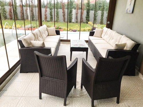 Подушка на сиденье толщиной 5 см покрыта полиэстеровой тканью и заканчивается кантом. Обеспечивает дополнительное удобство и комфорт сидящему. Подушка изготовлена из синтетической ткани, произведенной из полиэфирных волокон, хорошо сохраняет форму, устойчива к воздействию тепла и света.