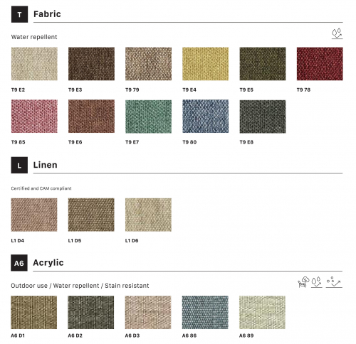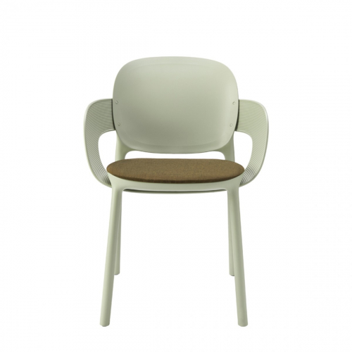 Hug технически представляет собой монокок из технополимера, но на самом деле это гибкая система, в которой компоненты объединяются для создания различных конфигураций стула и кресла. Предназначенный для использования на открытом воздухе, он также хорошо вписывается во внутренние помещения благодаря возможности покрытия некоторых его частей тканью. Внимание к декоративному аспекту, не в ущерб функциональности, подтверждается предложением вариантов текстиля: выбор мягких оттенков, от нейтральных до светло-голубых и бисквитных, сделанный интересным благодаря эффекту меланжа и видимым нитям утка, которые можно выбрать среди различных предложений в каталоге.