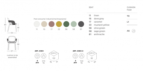 Коллекция стульев Hug символизирует возвращение к истокам Scab Design. Это связано с тем, что для ее изготовления был выбран технополимер, который был переработан с использованием современного подхода с целью повышения устойчивости благодаря конкретным передовым методам в пользу окружающей среды. Поэтому Hug изготавливается из сертифицированного регенерированного промышленного технополимера после вторичной переработки (PCR). Стул и кресло достигают более высокого этического уровня и более высокого качества. Scab Design проектирует будущее и принимает участие в защите планеты.