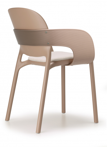 Коллекция стульев Hug символизирует возвращение к истокам Scab Design. Это связано с тем, что для ее изготовления был выбран технополимер, который был переработан с использованием современного подхода с целью повышения устойчивости благодаря конкретным передовым методам в пользу окружающей среды. Поэтому Hug изготавливается из сертифицированного регенерированного промышленного технополимера после вторичной переработки (PCR). Стул и кресло достигают более высокого этического уровня и более высокого качества. Scab Design проектирует будущее и принимает участие в защите планеты.