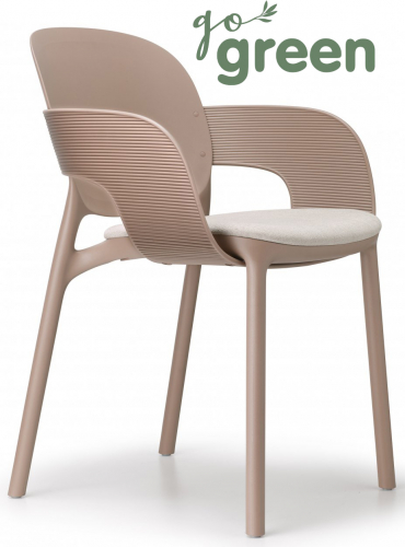 Для кресла Hug был разработан чрезвычайно характерный элемент: между сиденьем и спинкой дизайнеры ввели лентообразный элемент с округлой и сбалансированной формой, определяемый рельефным полосатым узором, который обволакивает, как объятия. Роскошь, которой можно наслаждаться как на открытом воздухе, так и в помещении, следуя хорошо зарекомендовавшей себя тенденции относиться к обеим средам с одинаковыми эстетическими кодами. Доступны два варианта: вы можете выбрать вариант Go Green, полностью выполненный из технополимера, который особенно графичен и красив со всех точек зрения, определяемый полосатым тиснением по всей ленте; или более изящный, с добавлением подушки сиденья и мягких подлокотников, обтянутых тканью, чтобы усилить эффект обволакивающего комфорта.