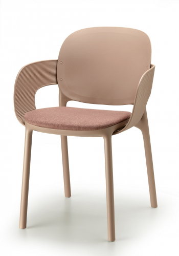Hug технически представляет собой монокок из технополимера, но на самом деле это гибкая система, в которой компоненты объединяются для создания различных конфигураций стула и кресла. Предназначенный для использования на открытом воздухе, он также хорошо вписывается во внутренние помещения благодаря возможности покрытия некоторых его частей тканью. Внимание к декоративному аспекту, не в ущерб функциональности, подтверждается предложением вариантов текстиля: выбор мягких оттенков, от нейтральных до светло-голубых и бисквитных, сделанный интересным благодаря эффекту меланжа и видимым нитям утка, которые можно выбрать среди различных предложений в каталоге.