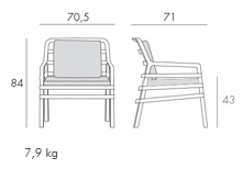 Материалы не подвержены воздействию УФ-излучения, благодаря этому кресло долго сохраняет свой первоначальный вид и не выцветает на солнце.