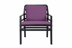 Кресло Aria из стеклопластика решетчатой структурой и матовым покрытием, похожим на лакированное дерево. Доступен ряд цветовых комбинаций каркаса и подушки.