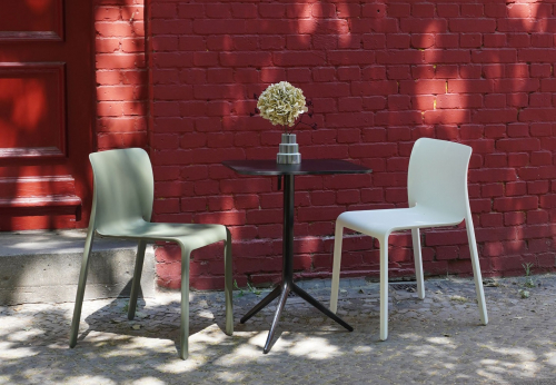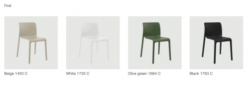 После стула Air, первого сиденья, в котором используется технология воздушного формования, стул First снова открывает новые горизонты в этой технологии (отсюда и его название). Пустая рама используется не только для объемов с небольшим трубчатым сечением, но и для более широких и сложных объемов всего сиденья и спинки. Это позволяет создать более органичную трехмерную форму без видимых трубчатых структур, которые можно увидеть на других стульях. Изящный и нежный дизайн стула First делает его подходящим и для использования на открытом воздухе.