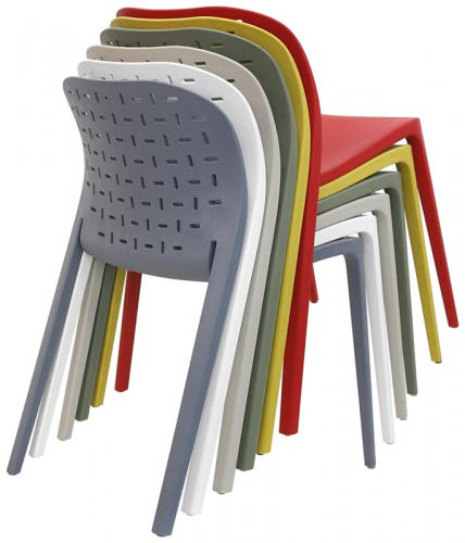 Стулья из стеклопластика (полипропилен, стекловолокно) итальянской компании Rossanese украсят интерьер любой комнаты, а также террасу. Удобное сиденье и спинка с перфорацией обеспечивают комфорт сидящему, небольшой вес (до 5 кг) - мобильность, а возможность штабелирования - удобное хранение. Благодаря широкой цветовой палитре стулья подойдут к любому стилю и концепции интерьера или открытого пространства.