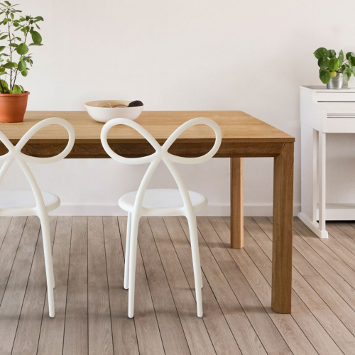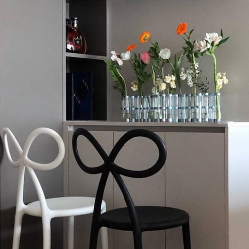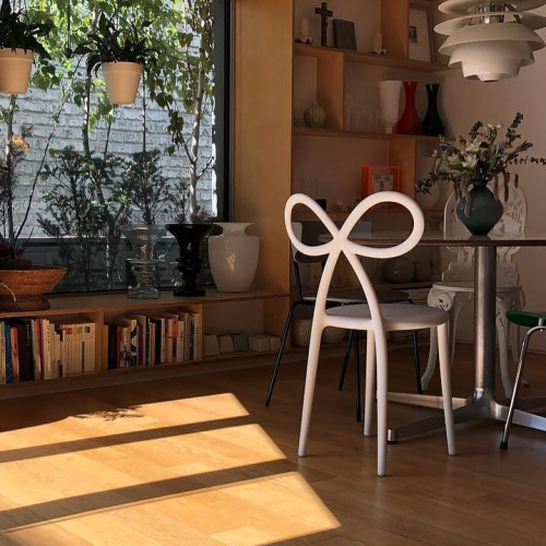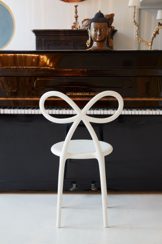 Стул Ribbon, способный создать необычайно романтичную атмосферу, является олицетворением женского стула. Красивый стул с сильной индивидуальностью характеризуется бантом, спроектированным как спинка. Бант - живой символ подарка и праздника, представлен дизайнером с мягкими, легкими и существенными линиями.