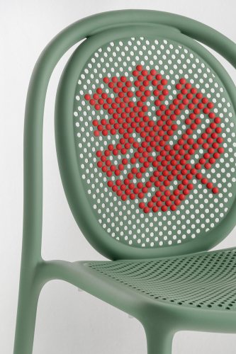 Коллекция Remind своими изгибами и извилистыми формами напоминает стиль мебели конца 19 века. Модель выполнена из стеклопластика, каждая деталь конструкции тщательно продумана для того, чтобы подарить несравнимый комфорт и уют. Благодаря своему силуэту данный стул прекрасно украсит собой как внутренние помещения, так и наружное пространство. Перфорированная стула кресла может быть украшена крошечными разноцветными кнопками из полипропилена, позволяя почувствовать себя настоящим художником и создавая бесконечное множество разнообразных узоров.