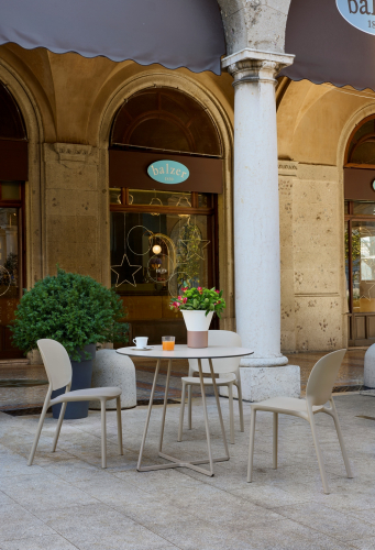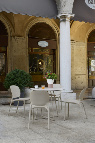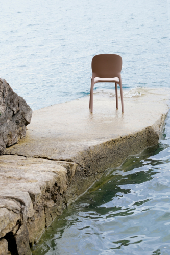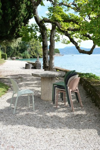 Роскошь, которой можно наслаждаться как на открытом воздухе, так и в помещении, следуя хорошо зарекомендовавшей себя тенденции относиться к обеим средам с одинаковыми эстетическими кодами. Доступны два варианта: вы можете выбрать вариант Go Green, полностью выполненный из технополимера, который особенно графичен и красив со всех точек зрения, определяемый полосатым тиснением по всей ленте; или более изящный, с добавлением подушки сиденья и мягких подлокотников, обтянутых тканью, чтобы усилить эффект обволакивающего комфорта.